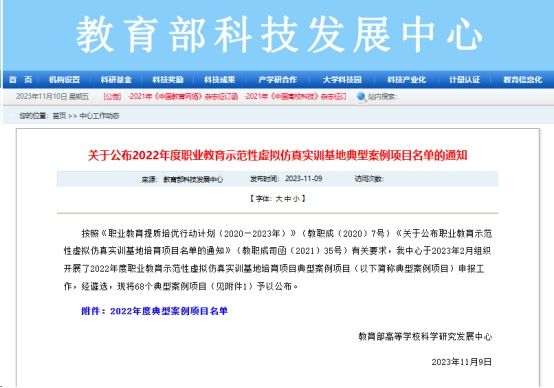 公司案例入选教育部职业教育示范性虚拟仿真实训基地典型案例