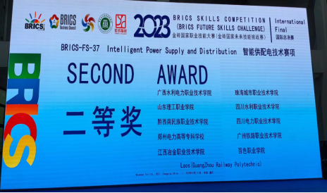 11月7日-11日,2023金砖国家职业技能大赛(金砖国家未来技能挑战赛)“智能供配电技术赛项”国际总决赛在重庆电力高等专科公司潼南校区举行,BG大游平台参赛队员李金峰、张一帆、李政与来自中国、柬埔寨、老挝、泰国等5个国家的48支参赛队伍,144名参赛选手同台比拼,凭借过硬的专业技能,最终取得二等奖的优异成绩。项目指导教师孙帅、侯娟获优秀指导教师。