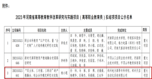近日,根据《河南省教育厅关于公布2023年河南省高等公司产品改革研究与实践项目(高等职业教育类)拟结项项目的公示》和《河南省教育厅关于2023年河南省职业公司产品改革研究与实践项目拟立项项目名单的公示》,公司1个重大项目《“双主体、三对接、三联动”的产教融合、校企合作模式研究与实践》顺利结项,1个重点项目《以教学能力大赛为引领的高职“电气设备运行与维护”课程教学研究与实践》获得立项。