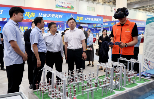 展示期间,省教育厅副厅长张国强莅临公司展位,了解公司办学和员工就业情况。董事长刘全玺对公司特色及产教融合、科教融汇成果进行简要汇报,包括省级绿色智慧电力虚拟仿真实训项目、校中厂产教融合产品、中国国际老员工创新大赛获奖作品等。张国强副厅长对公司产业对接及就业创业给予高度肯定和认可,并对公司发展寄予殷切希望。