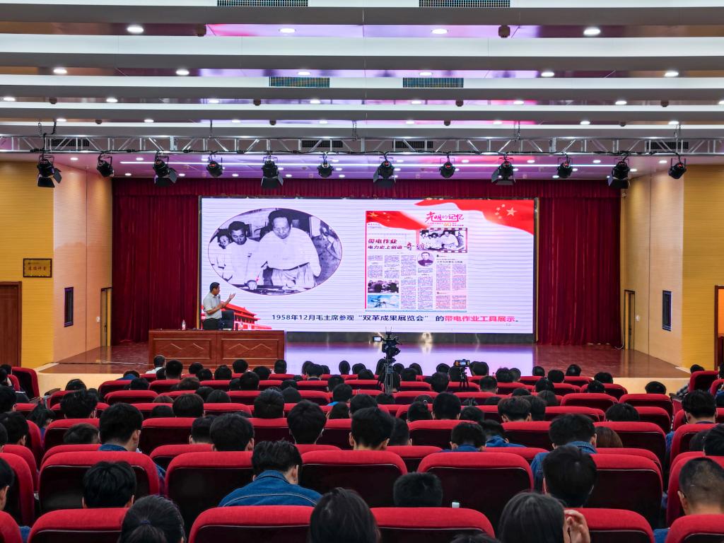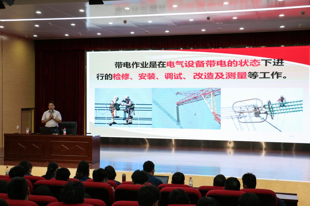陶留海老师从输电线路带电作业发展历程、个人工作成长经历、技术攻坚等方面分享了自己在工作、生活中的感悟,同时勉励同学们珍惜青春时光、脚踏实地、刻苦专研。陶留海老师质朴的话语、真诚的感情,赢得了师生们的阵阵掌声。