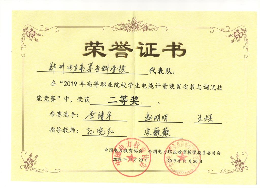11月20日,2019年全国高等职业院校员工电能计量装置安装与调试技能竞赛在广西电力职业技术公司举行,经过激烈角逐,公司参赛队伍以第三名的成绩荣获二等奖。