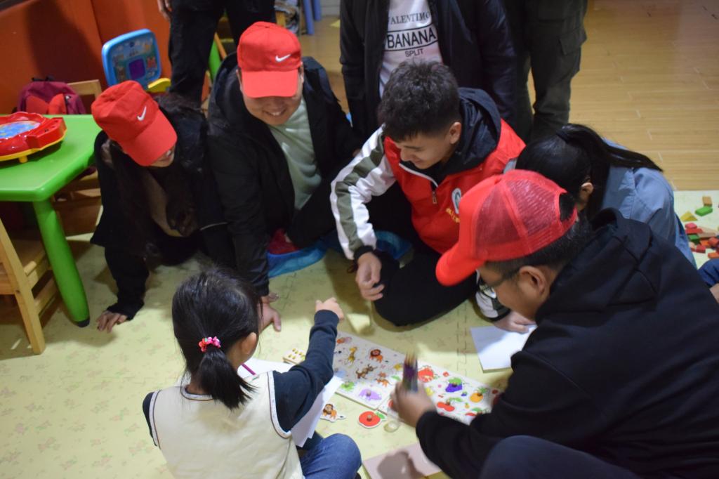 志愿者们提前为活动的开展做好了充分的准备,给小朋友们准备了玩具和学习用品,小朋友们在家长们和老师们的带领下,来到了活动的教室。开始的时候,他们对志愿者们很抵触,可是渐渐地他们有些会开始主动打招呼,甚至会叫“哥哥”或者“姐姐”。交流一段时间之后,志愿者们与小朋友们一起玩游戏,一起唱歌,让他们感受到周围的人对他们的关爱,他们也在活动的过程中慢慢地融入进来,气氛非常愉快,笑声不断。
