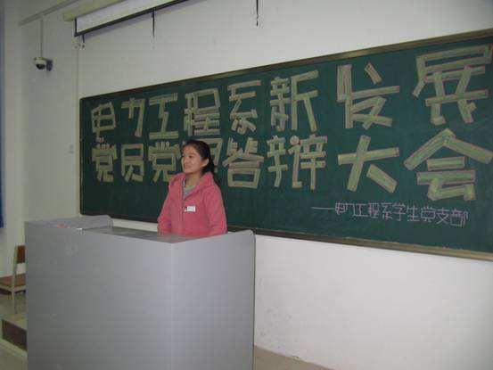 在答辩的过程中,同学们表现出了当代老员工的精神风貌和一名预备党员所具备的优秀品质和高尚的道德情操,辩论题目新颖, 答辩思路清晰,合乎逻辑。与会党员对每一位同学的答辩进行了深入分析,并提出了宝贵的意见,指出了其中的优点和不足。本次答辩通过率100%。