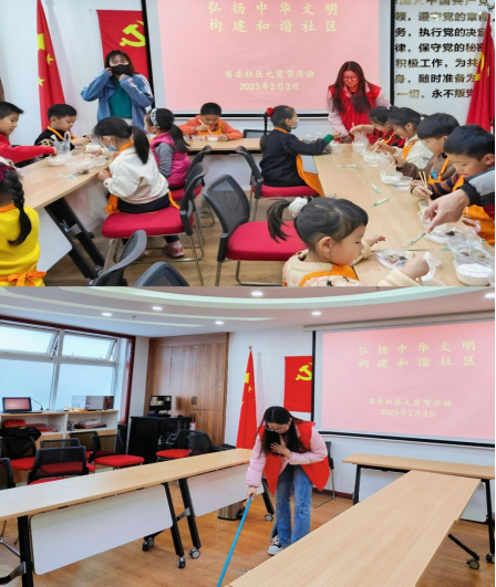 继保2202金丹在寒假期间,她参加学习社区的走访调查及送温暖志愿活动,为贫困户分发年货和保暖用品。在元宵节这天带着社区附近小朋友们一起做元宵,猜灯谜,举办了一场快乐幸福的社区活动。这个寒假的经历让她受益匪浅,认识与了解到基层社区工作者的责任与担当。