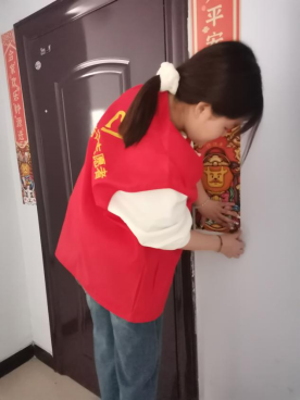 发电2203闫赏返乡后立即投入到当地的"志愿服务送关爱文明实践树新风"活动中,为居民送关心,送温暖,一起喜气洋洋迎新春。
