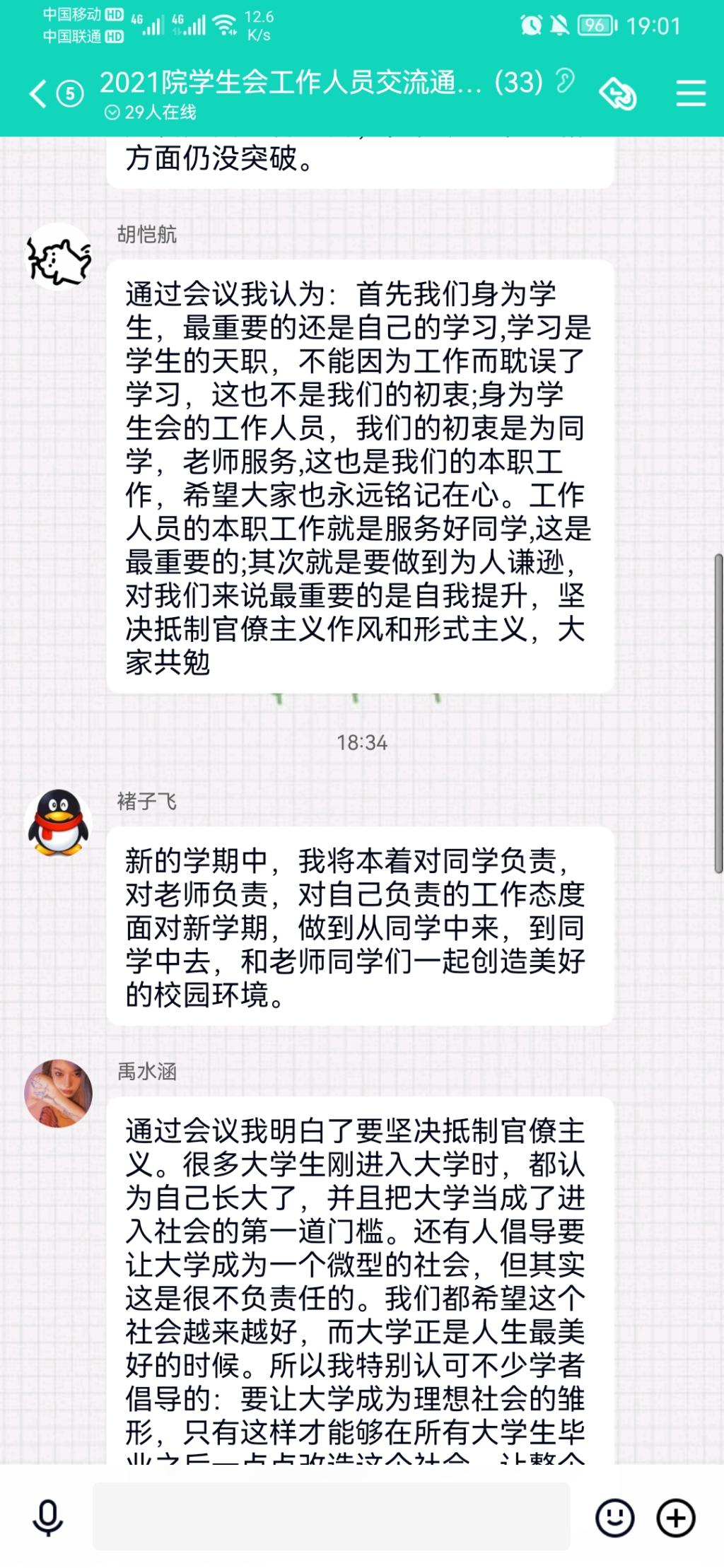 通过本次会议,员工会工作人员进行了自查自纠,增强了大家的认识,提升了工作能力,为更好发挥联系同学的纽带作用奠定了良好的基础。