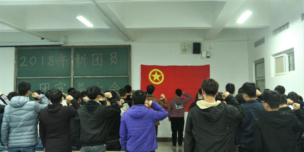 面向团旗,新团员在团总支组织委员的带领下庄严宣誓:“我志愿加入中国共产主义青年团,坚决拥护中国共产党的领导,遵守团的章程,执行团的决议,履行团的义务,严遵团的纪律,勤奋学习,积极工作,吃苦在前,享受在后,为共产主义事业而奋斗。”