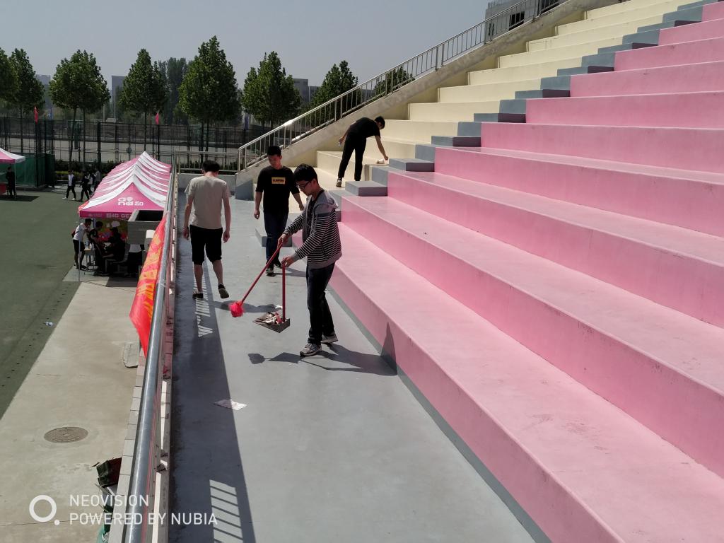 4月18日-19日公司举办了田径运动会,运动会结束后,观众席等操场周边散落了较多矿泉水瓶等废弃物,志愿者们在工作人员的带领下,携带清洁工具工具,按照提前划分的区域认真打扫卫生。数小时后,公司运动场又恢复了往日的洁净。