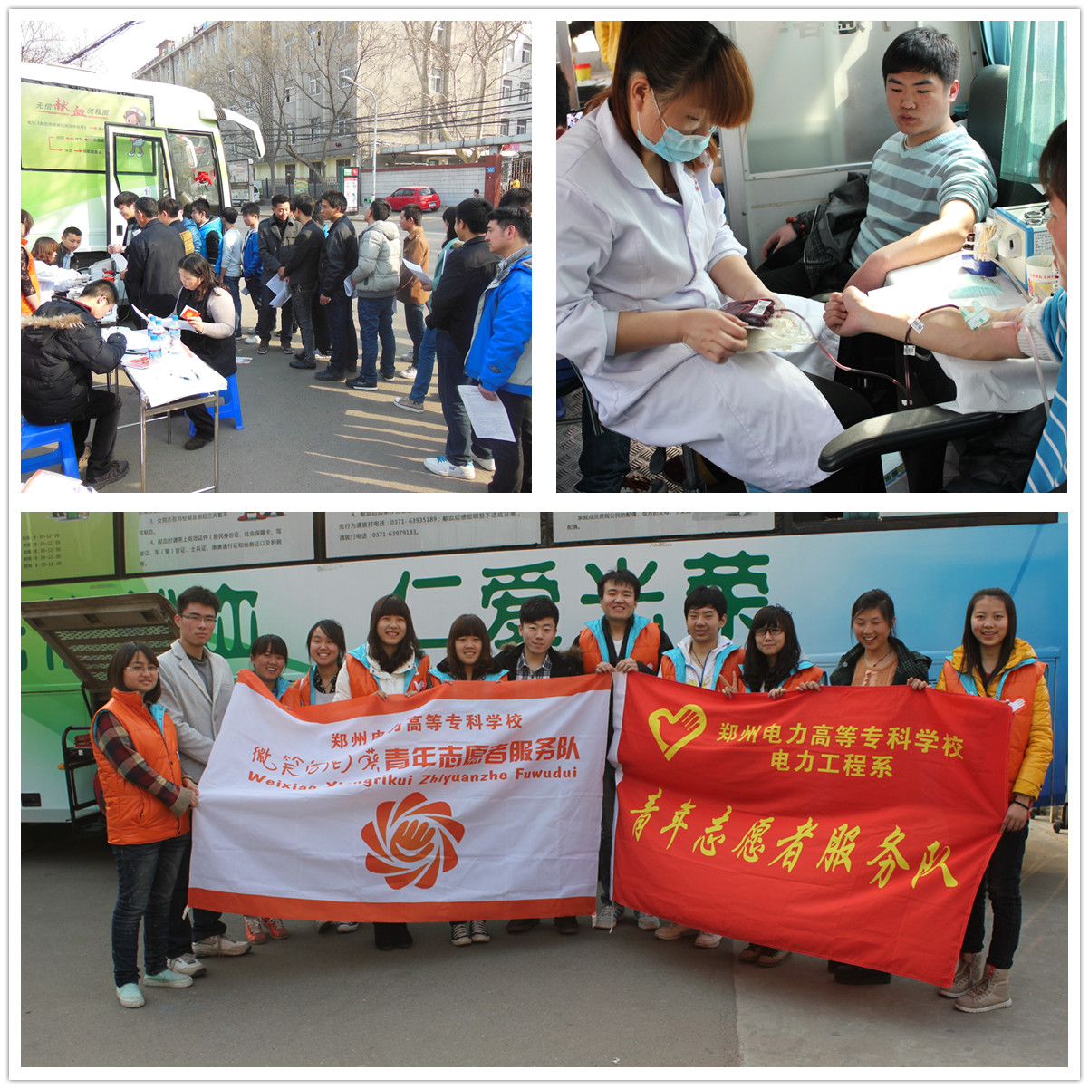 3月5日是第50个“学雷锋纪念日”,为继承“雷锋精神”和弘扬“奉献、友爱、互助、进步”的志愿者精神。“微笑向日葵”与“电力荧光”青年志愿者服务队邀请河南省红十字血液中心到校宣传“无偿献血”。