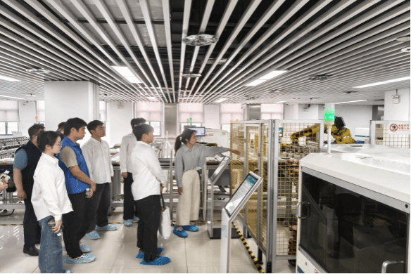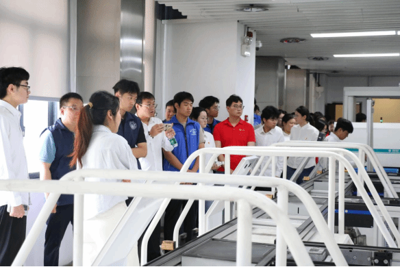 随后,在技术人员的带领下,同学们参观了单相电能表自动化检定流水线。这条集智能化、自动化于一体的生产线,包含“五线一库”完整体系,展现了现代电力计量的科技水平。当电能表在传送带上缓缓移动时,先进的机器视觉检测系统正以每秒数十次的频率进行全方位“体检”,不仅能识别细微的外观瑕疵,还能精准检测30余项关键指标。在智能仓储物流库,大数据、物联网等先进技术实现了电能表全生命周期的智能化管理。在参观学习过程中,同学们积极提问,与技术人员深入的交流。
